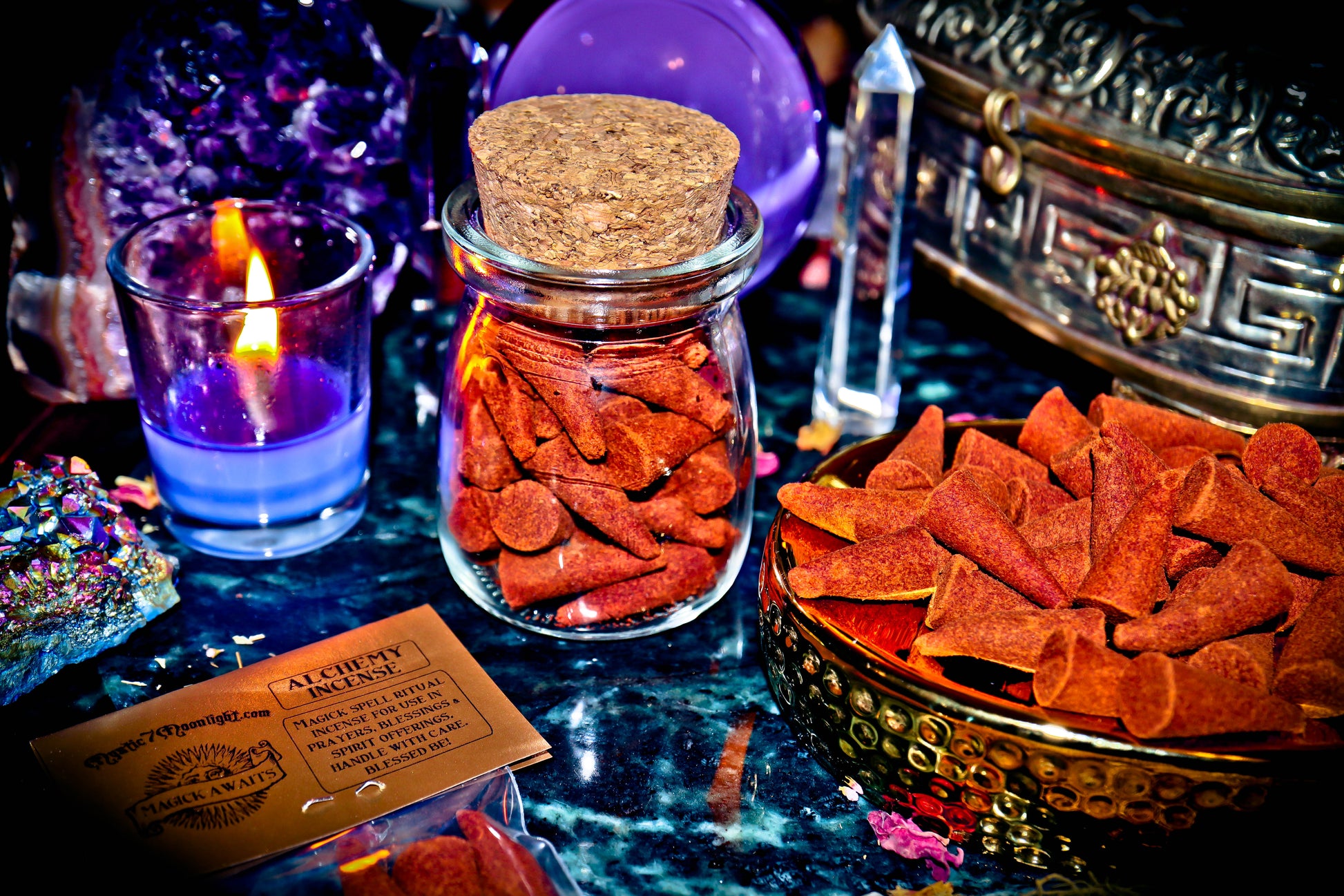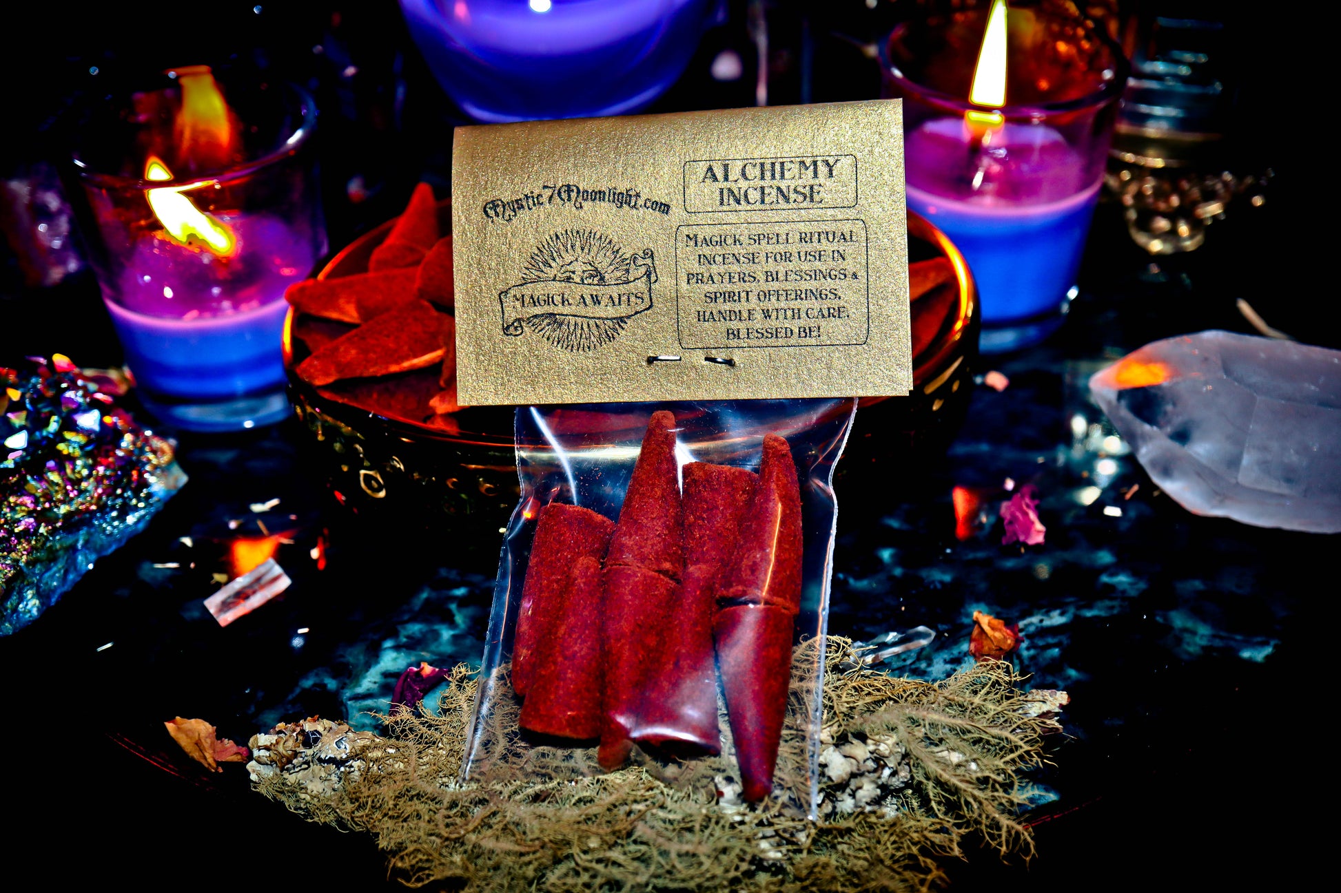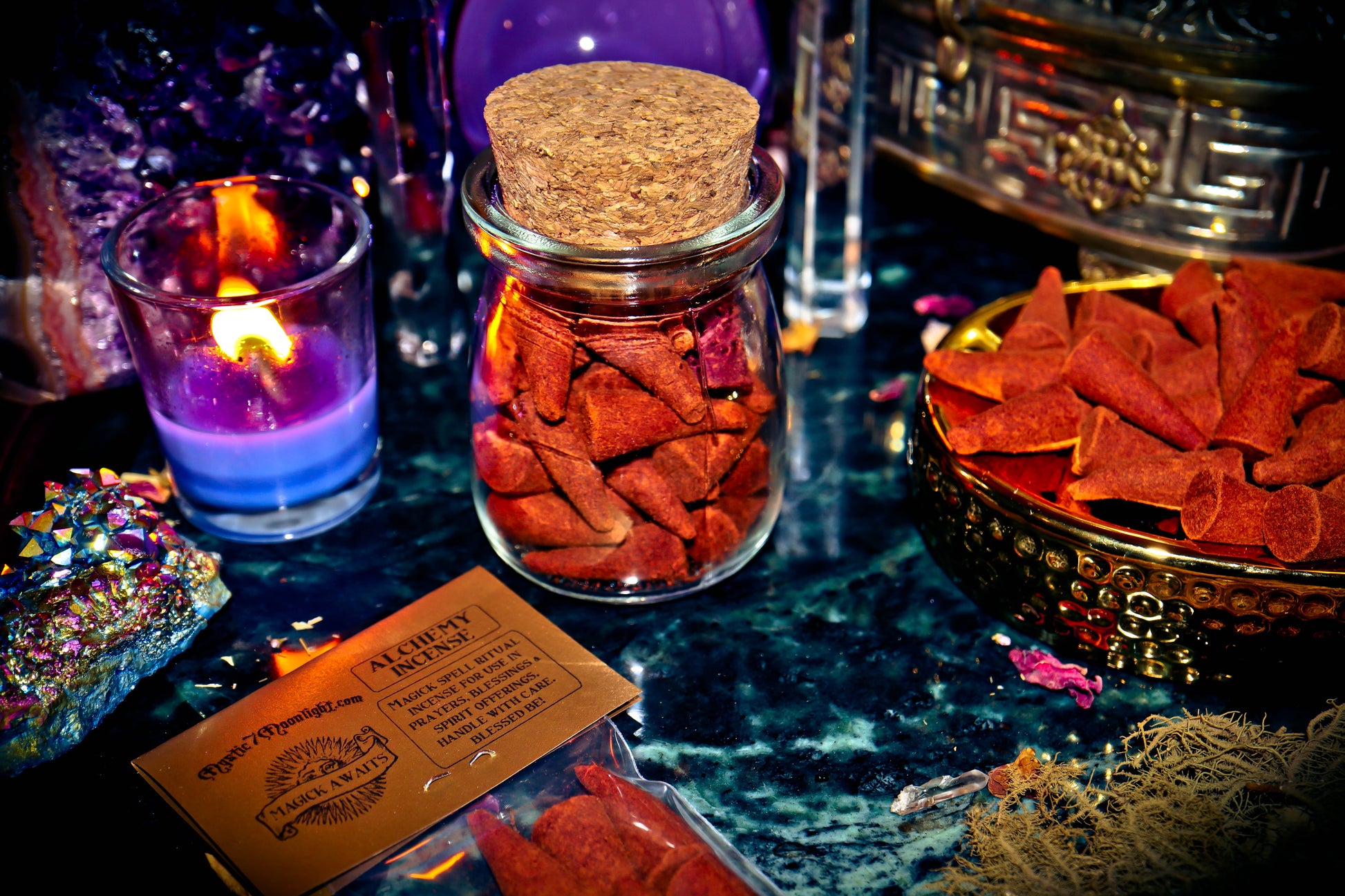 ALCHEMY Magick Ritual Incense ~ Amplify the Power of Spells & Wishes ~ Spirit Offering & More! 33 Cone Incense Premium Handmade Apothecary Glass Bottle w/ Cork