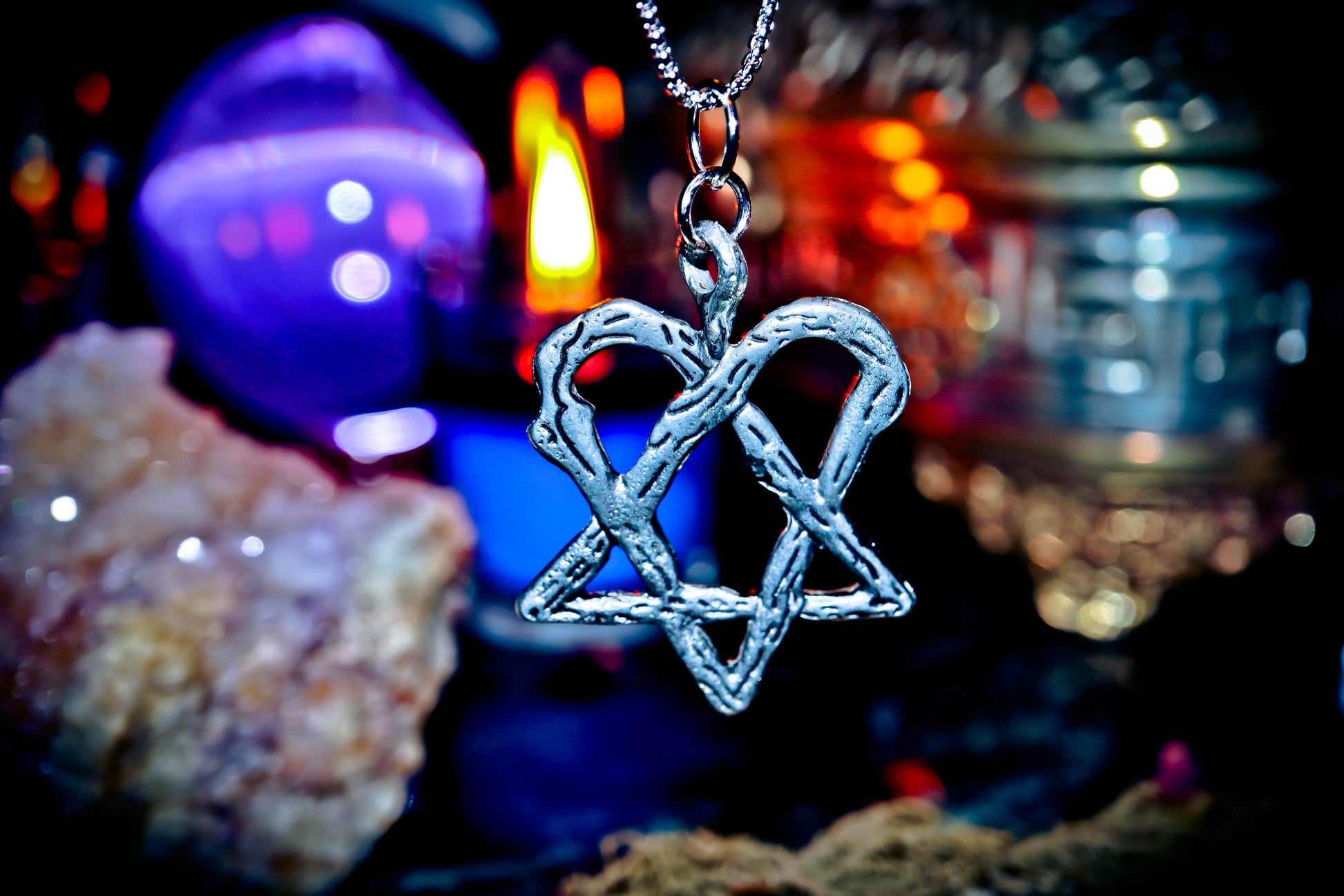 The Heart Pentagram is a deeply symbolic and powerful talisman that combines the energies of the pentagram and the heart, blending spiritual protection, love, and personal transformation. The pentagram itself represents the five elements—earth, air, fire, water, and spirit—making it a symbol of balance and harmony. When combined with the heart, it channels the energies of unconditional love, compassion, and emotional healing. This symbol is used to enhance the wearer’s ability to manifest love, strengthen relationships, and foster emotional stability. It also acts as a protective shield, warding off negative influences and promoting inner peace.