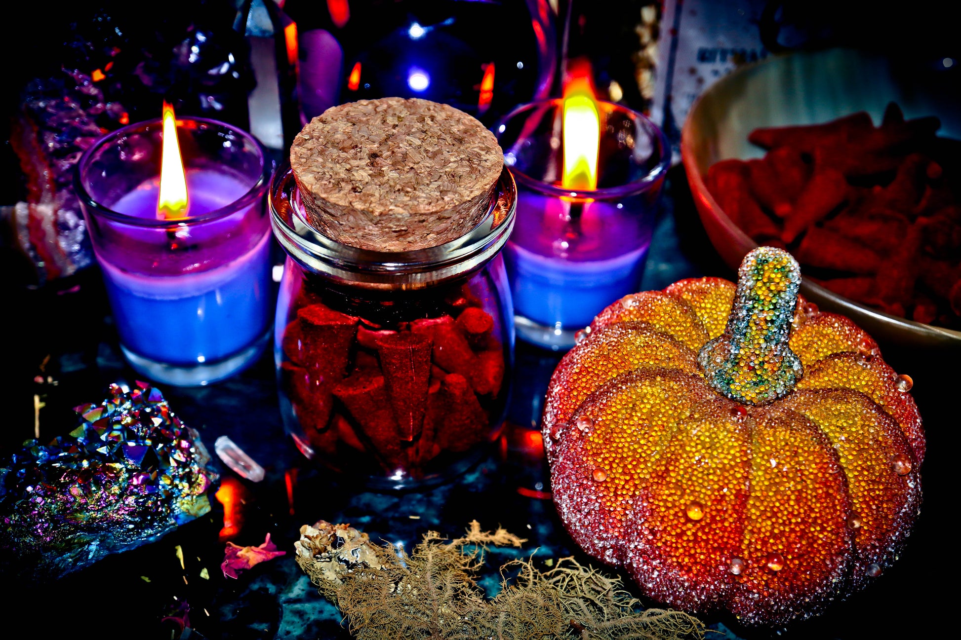 SAMHAIN Magick Ritual Incense ~ Amplify the Power of Spells & Wishes ~ Spirit Offering & More! 33 Cone Incense Premium Handmade Apothecary Glass Bottle w/ Cork