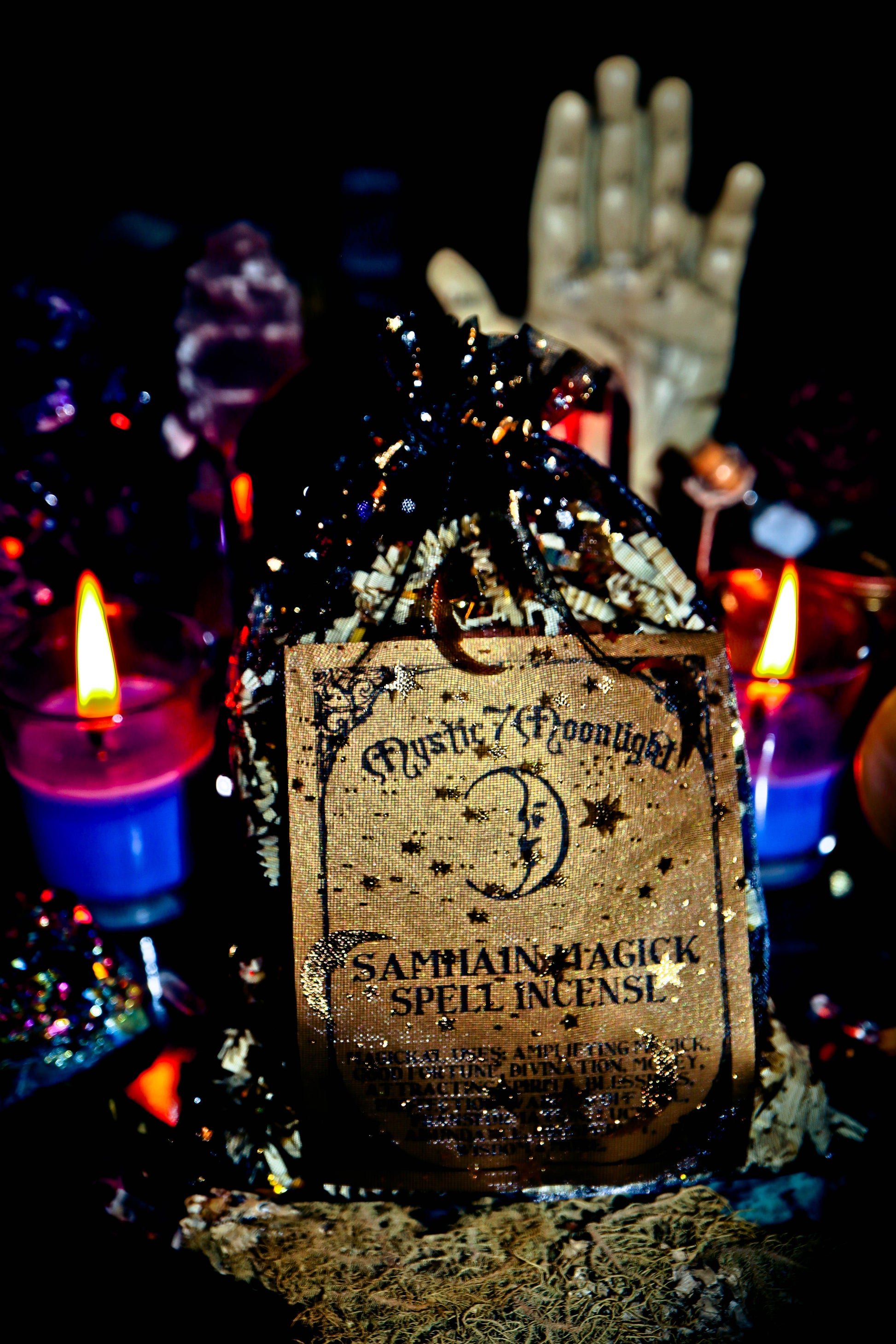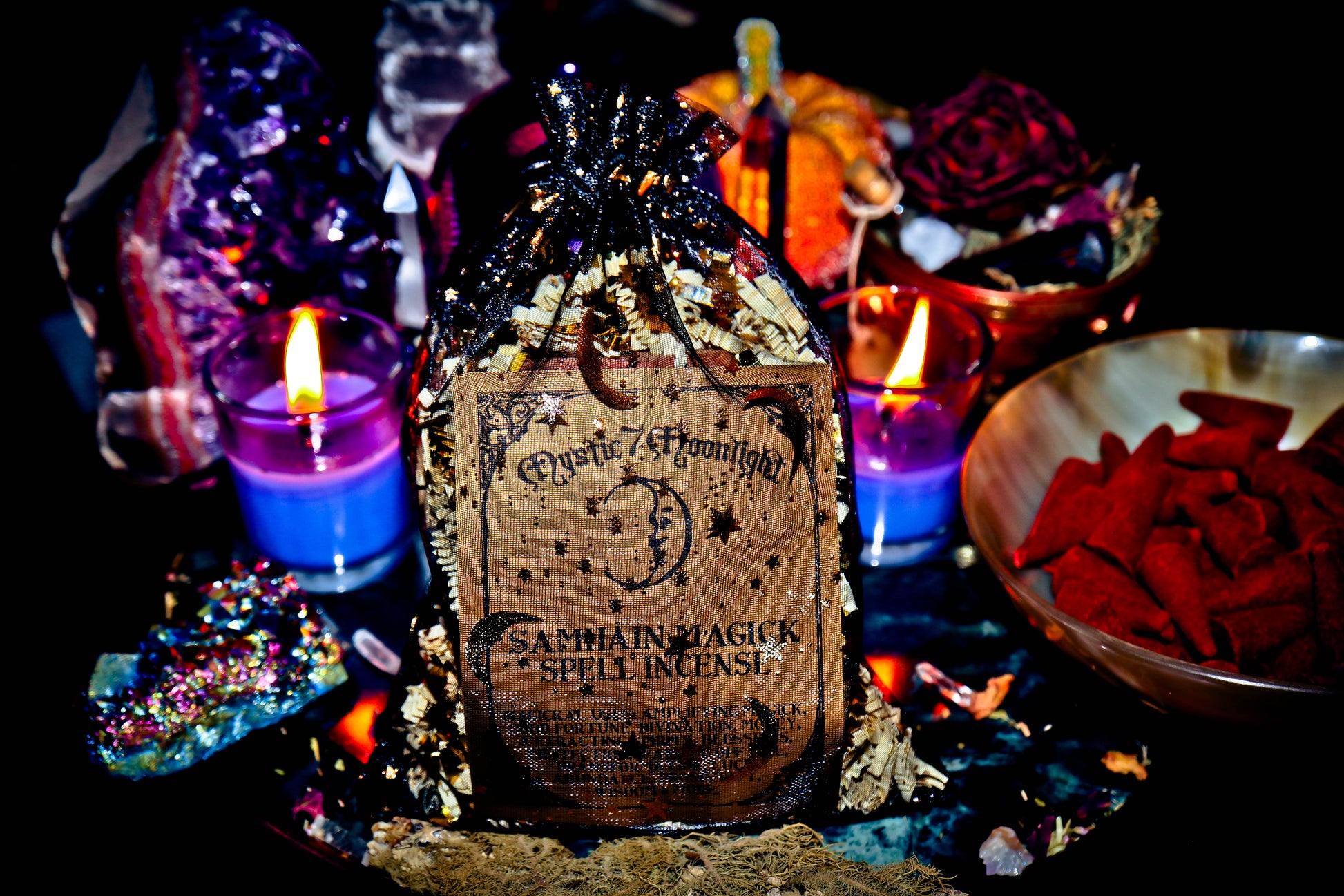 *** SAMHAIN Magick Ritual Spellcast Incense ~ Attract Positive Energy, Fortune, Protection, As a Spirit Offering & More ~ 3.4 oz Premium Apothecary Glass Bottle w/ Cork ***